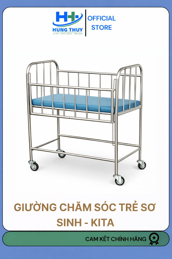• Giường có nệm dày 50mm và 4 bánh xe Ø80mm